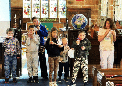 Thank you, God, you’re wonderful! This was the refrain to our Messy Psalm written by Sue Hull using our ideas as we praised God for his creation in song and with some very loud bagpipes created by the children. We watched images of God’s world alongside Psalm 148 and threw an inflated globe around in our prayers. Pete’s group looked at the range of psalms and the styles in which they were written.